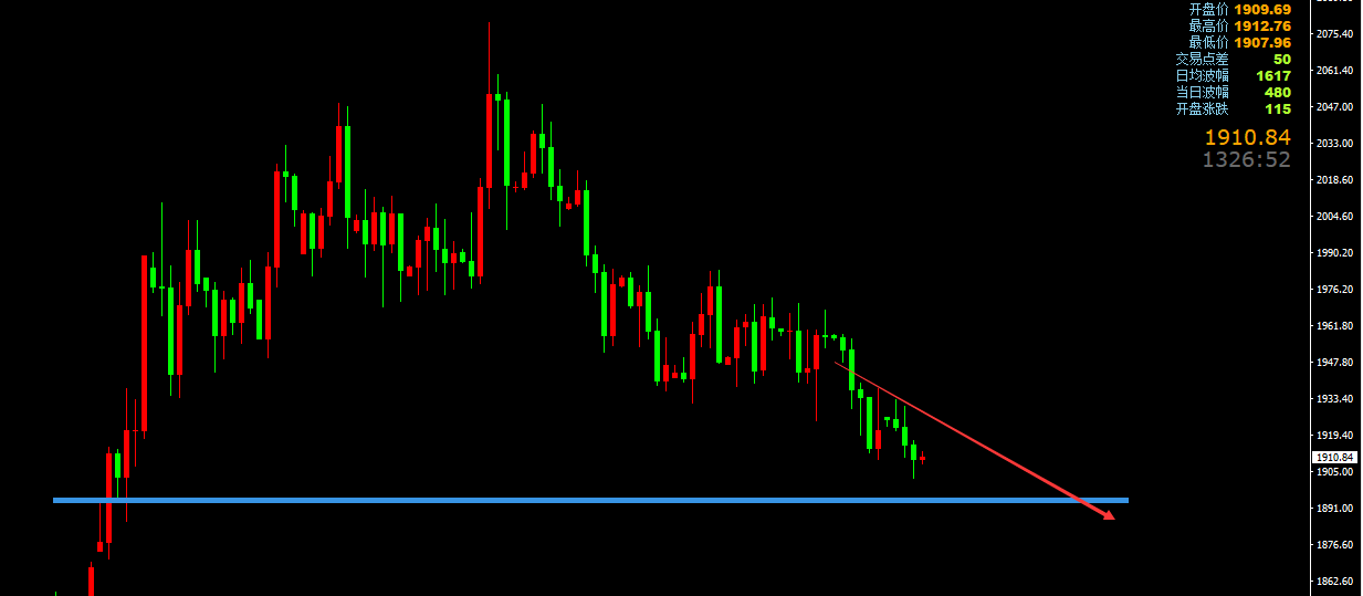 黄金回踩1902-1904附近继续多,防守1895,目标1915-20区间,反抽在1916-18一线空,防守1824,看1900-1894区间