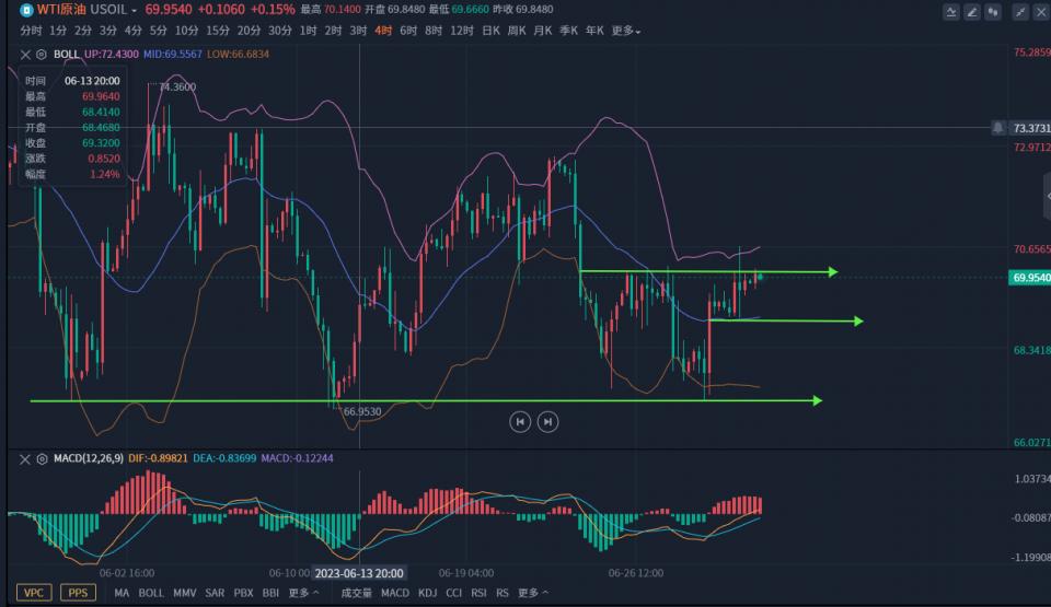 原油方面、昨日晚盘回踩69附近支撑再次出现企稳,但晚盘突破70.1连续承压高点没有出现延续走强,短线震荡偏强,整体趋势低位整理,短线方面并不明朗,今日关注69附近支撑,如果欧盘走弱跌破反抽空一次,其他地方暂时不做参与。