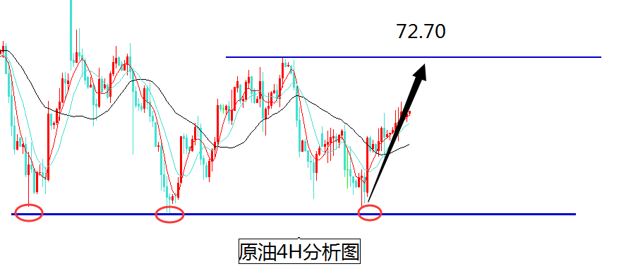 近期的原油我们又是全胜,节奏把握的杠杠的,上面的4H分析图显示了大周期的原油是在底部大震荡,目前可以看见的属于新的一波的浪结构反弹,这波反弹我们先看72.70,周线上周也是收小阳线,会在一定程度上支撑多头继续反弹,今天短线在69.50-69.00这一带布局多单吧。