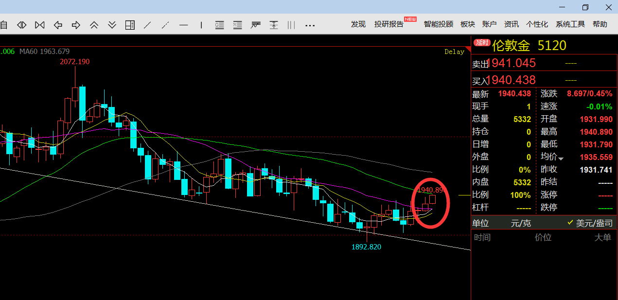 早盘黄金再次走高,今天接下来重点关注40日均线位置1942压制。如无法越过1942,那么行情依旧有望再次回落。不过即便站上1942之上,那么多头上方空间也不会太大,充其量也就是1955-1960区域。