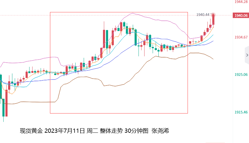 上交易日周一(7月11日):国际黄金/伦敦金继续反弹收涨,虽然遇阻30日均线阻力明显回撤,但也稳健持稳在短期均线上方,同时也突破中轨阻力,暗示后市仍有再度走强的预期。不过,也仍需注意有遇阻回落的风险。
