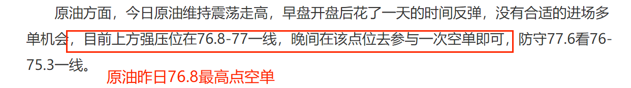 ⑤ 原油反弹76.6-7空一次,防守77.4看75.8-75