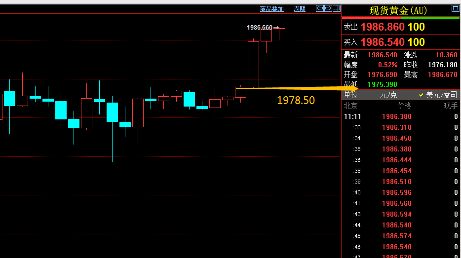 交易计划:黄金1978.50做多,止损1974.50,上看1990