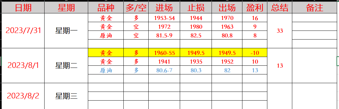 昨日黄金走势基本是一路下跌。给出的1953-56多遗憾止损,而晚间1940-42多在早间迎来转机。