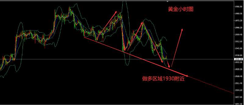 继续保持低多思路不变,两手准备,第一,1935附近轻仓介入多单,预留加仓机会。第二,等待短线再度下探破新低后于美盘前后出现弱转强信号之后再介入多单,也是多单的加仓信号。位置关注1930——1926区域,一旦黄金企稳转强,多单目标依然看至1970——1980区域。