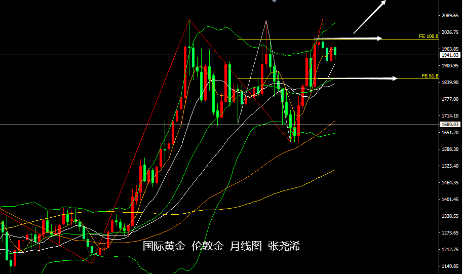 虽然目前走势仍处于2078美元遇阻回落的压力之中,但鉴于上述信号,就算有回落前景,也是区间震荡整理,或者是顶多回撤触及30月均线支撑附近,不过这也是为了制造更好的长线看涨入场机会而已。