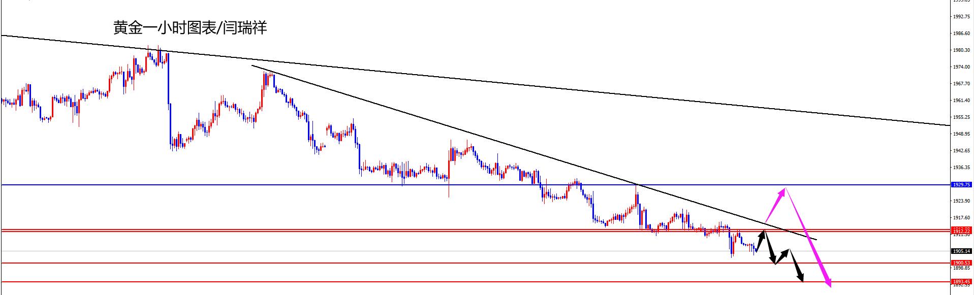 黄金1912-13区间空,防守10美金,目标1900-1895(如若价格站稳昨日高点则等待1930再空)