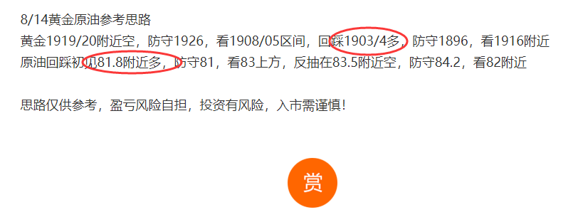 8/15黄金原油参考思路
