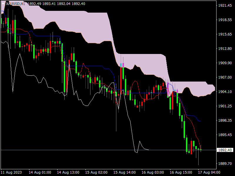 金价昨日下跌,美元走高,同时美联储7月政策会议记录凸显出,决策者在是否需要进一步加息的问题上仍然存在分歧。全球最大黄金支持交易所交易基金(ETF)SPDR Gold Trust的持金量降至2020年1月以来的最低水平,这表明了投资者的情绪还是不看好黄金上涨。技术面看,黄金上个交易日延续下跌,日线报收略带上影线的中阴线,日线周期上维持下降趋势运行。1小时图下降趋势运行,根据一目均衡表操盘法则,建议在1898附近做空,止损1904,目标1888-1875。
