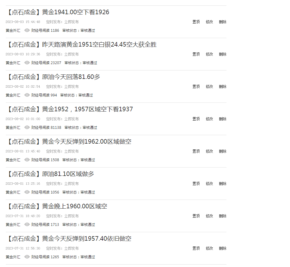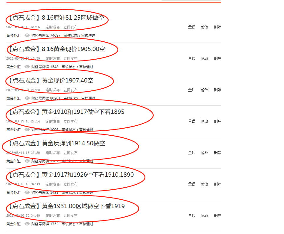 【点石成金】黄金8月一直做空到1890今反弹1999空