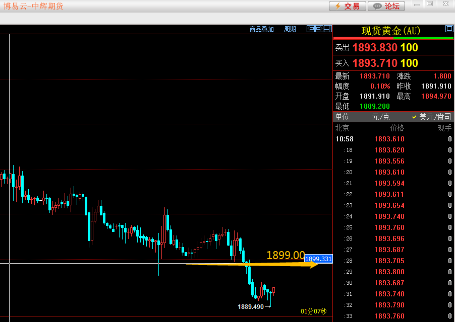交易计划:黄金1899空,止损1803.50 下看1890,1885