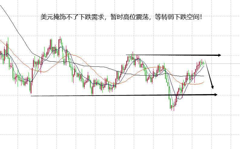 美元在周一波动不大,小范围内走高位震荡,一直徘徊在103.1附近,最终收盘也是在此点位,周一讲过,美元近期保持在104压制下有回落的需求,重点关注下方两个点位,第一是102.8,第二是101.5,如果出现有效回落,大跌力度出现,前期的大涨势必会回吐一部分空间。今天也是如此,美元在走高位震荡的同时,关注持续回落力度,强弱关键点在102.8附近,跌破此点位后可坐等大跌空间。