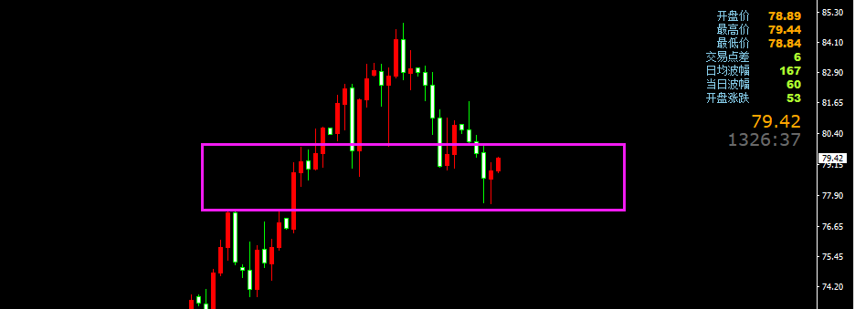 原油反抽初见80.2附近空,防守81,看78附近,回踩77.8附近多,防守77,看79.5上方
