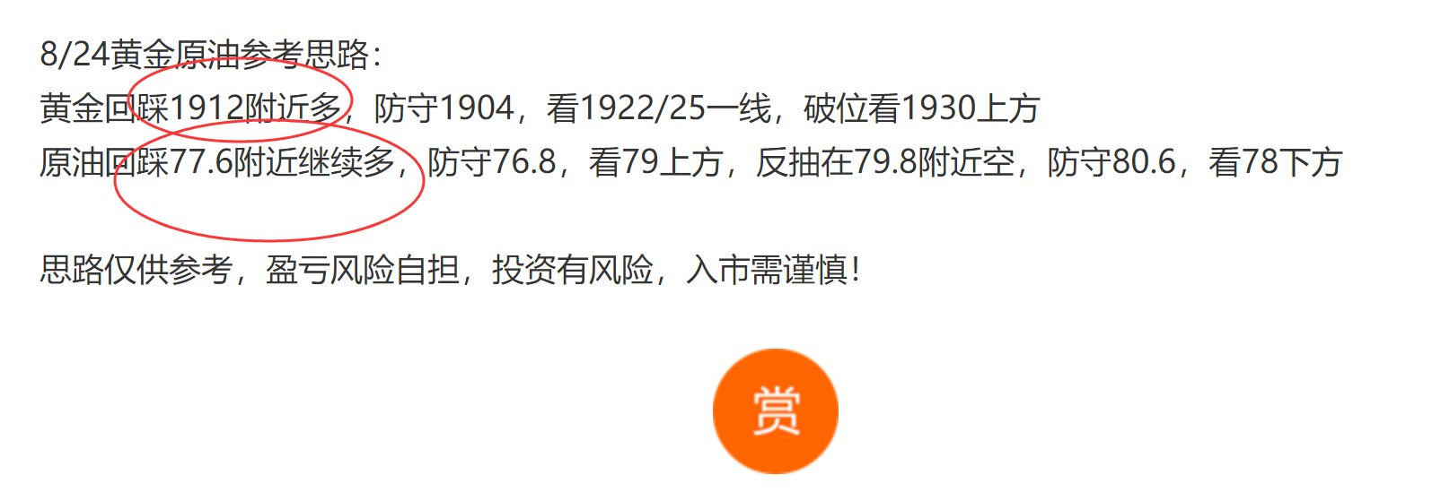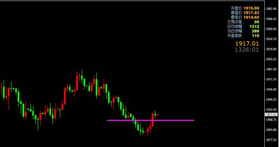 黄金回踩1912/13附近继续多,防守1905,目标1925/1935一线