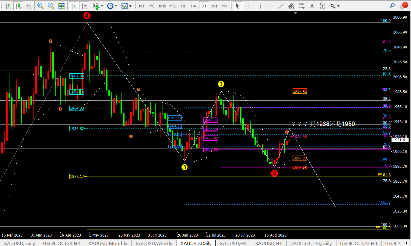 黄金昨日基本维持在1913-1919区间来回震荡,在凌晨价格冲高至1926附近回撤至1916一线并收盘于1920附近。