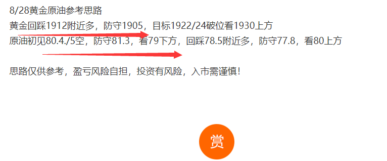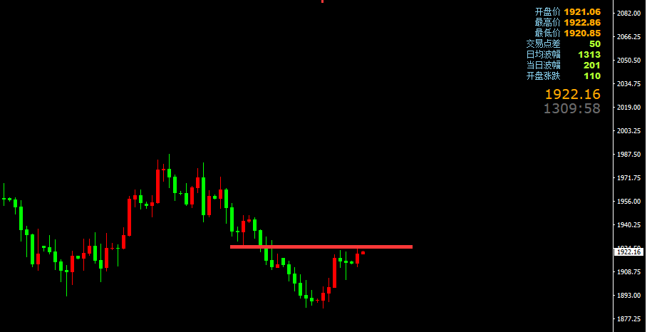 黄金回踩1916附近多,防守1908,目标1925附近,破位看1930上方不变