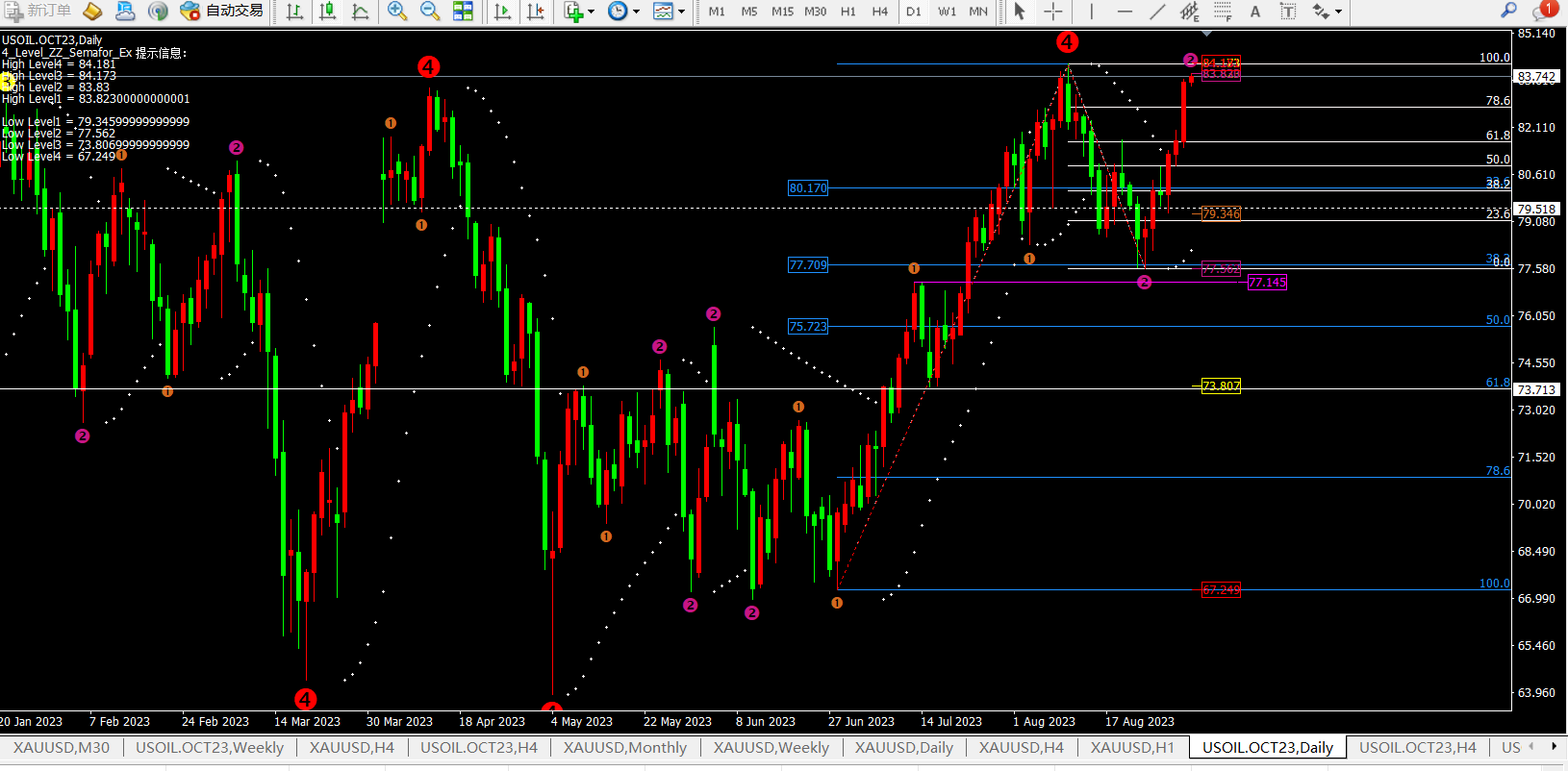 本来我们预计周线是探底反攻的过程,但是价格下跌至79.3后直接大阳拉升,因此探底结束,所以周线级别79.3就成为了短期的低点,我们布局多单也需要在79.3上方进行。