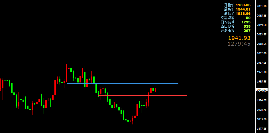 非农前黄金回踩1935附近多,防守1928,看1950附近,反抽到1958附近空,防守1966,看1940下方
