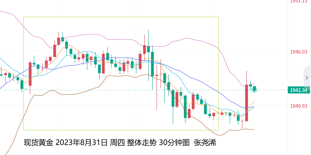上交易日周四(8月31日):国际现货黄金/伦敦金冲高回落收取倒垂阴线,且并未刷新前日高点,多头动力显示减弱,短期或将陷入震荡,或再度冲击100日均线目标阻力后,转明显遇阻行情。