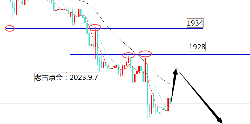 今天的空头需要关注两个位置,一个是1928的位置,另外就是1934,如果意外破了1934,短线就出现企稳止跌,后面也可以介入多头的机会,下面大底部1893是一个大的坎有技术性大反弹的需要。如果晚上有机会触及不是一次性的秒破都可以反趋势接多。