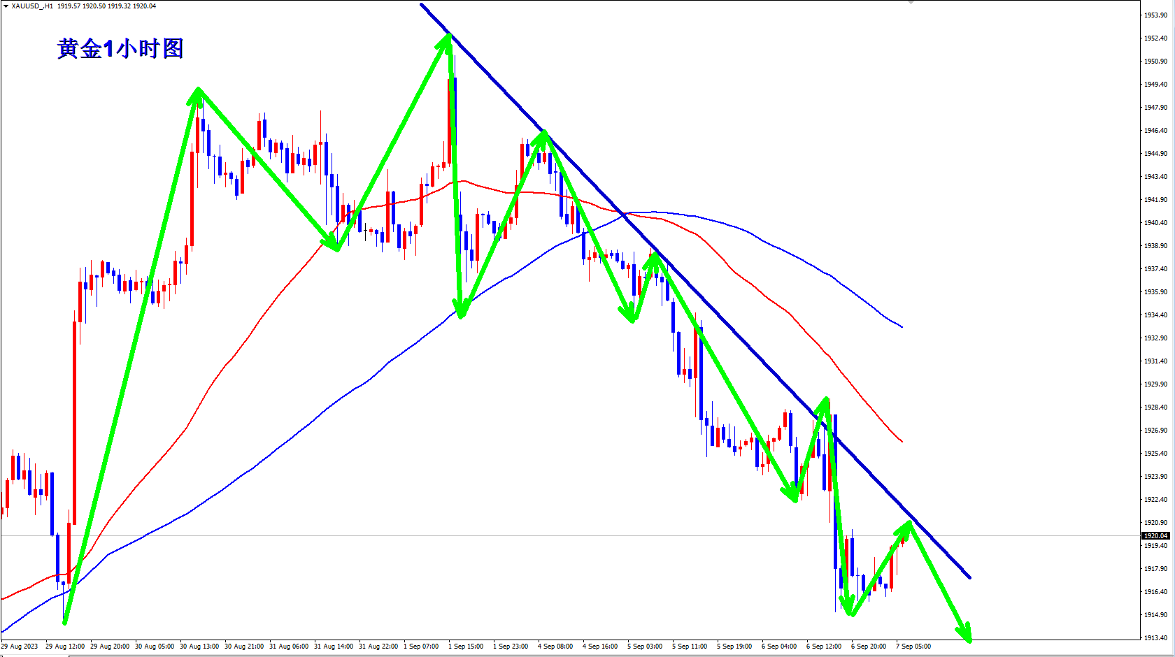 黄金反弹了,要转势了?我不这么认为,反弹反而是给干空的机会,在趋势没有改变之前,先将空头干到底,黄金现价1921直接空!