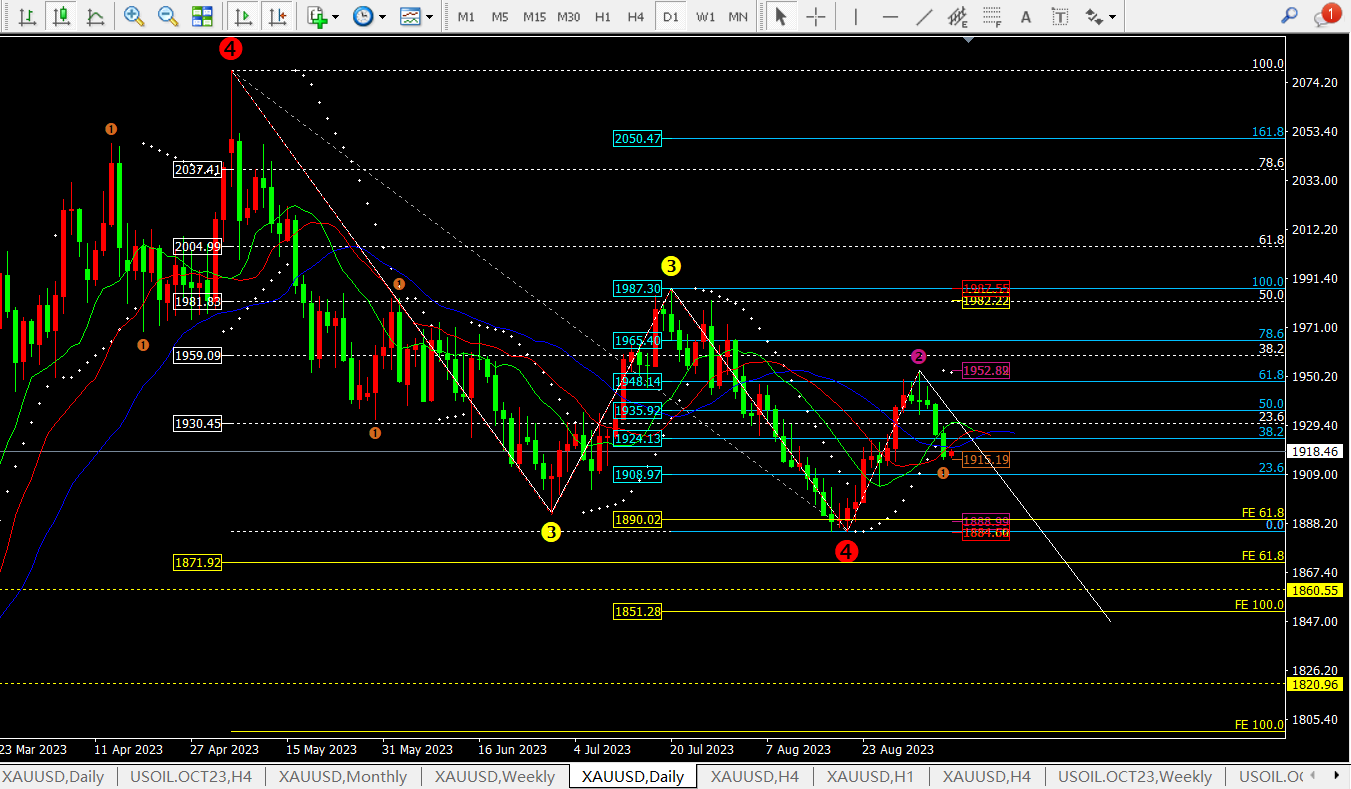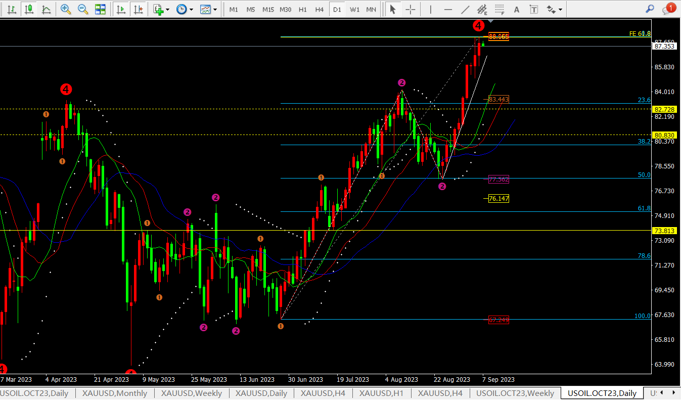 黄金跌破日线中轨并收线其下方前期1947-50中线空成立,原油个人预计88先回落后再上涨。