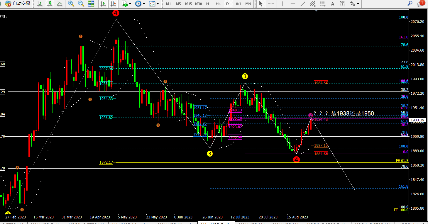 因为日线昨日反弹的最高点是1929一线,因此我们日线空单在1926-27为最佳点位。