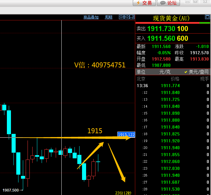 交易计划:黄金1915.00区域空,止损1920,下看1904