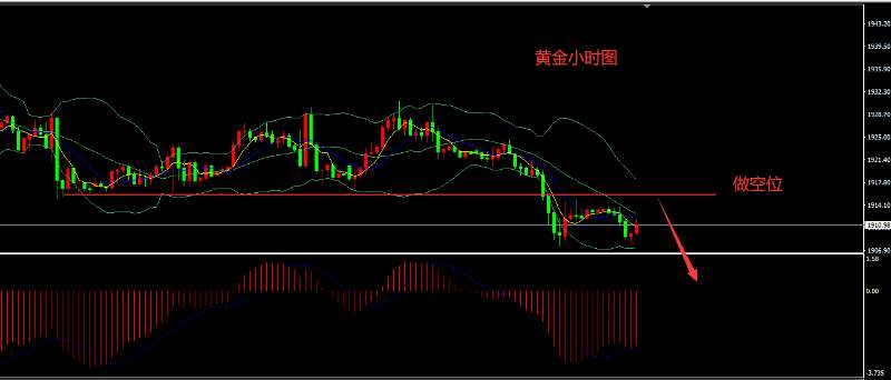 黄金如期受阻1930下跌,并且如期跌破1915支撑