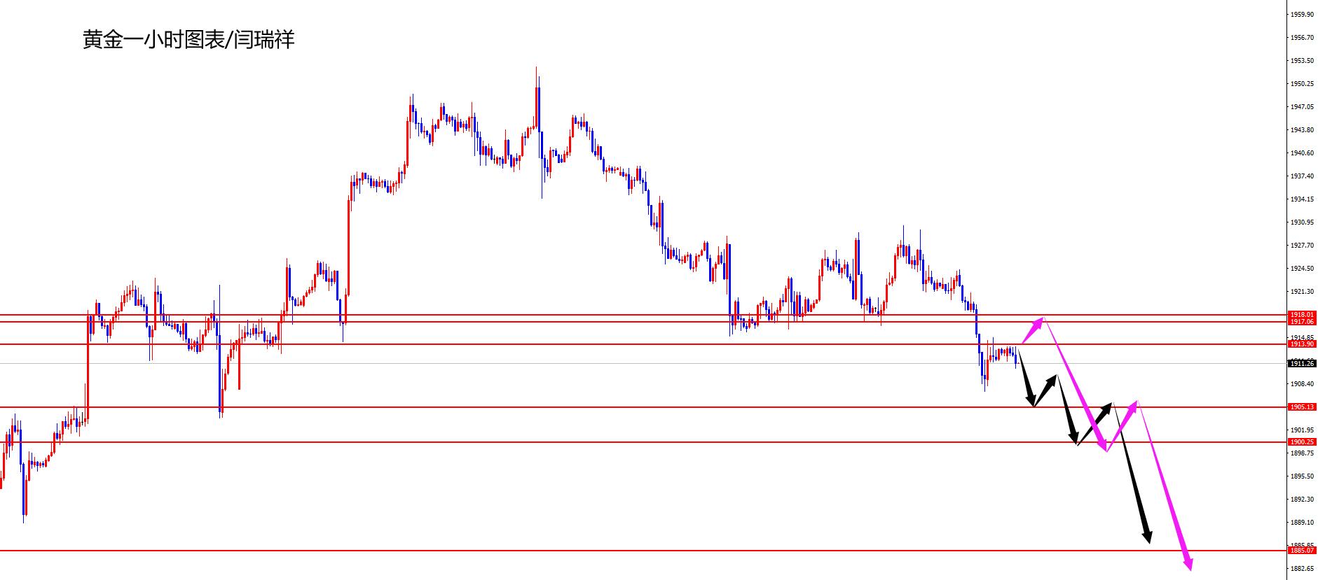黄金1917-18区间空,防守10美金,目标1905-1900-1885(激进者于1914区域先空)