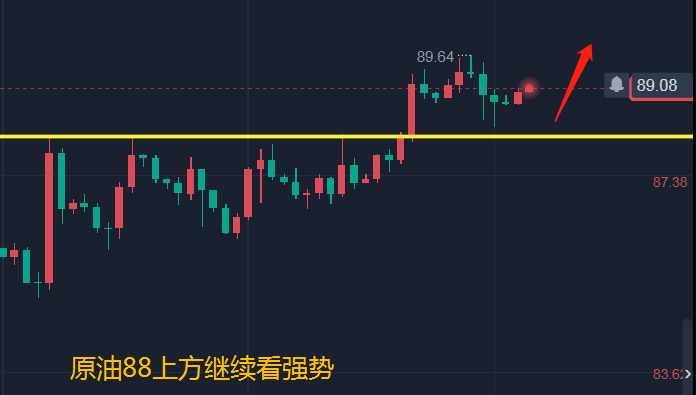原油昨天整体走势冲高回落,在小幅走高之后多头乏力走出下跌,但看涨方向不变,毕竟日线上看涨形态娘好,而均线也是多头排列,所以回撤继续多,而凌晨油价已经回踩了日线的MA5位置,所以日内就没必要等待此点位去交易了,如果意外二次探底给到是可以继续看涨的。所以建议88.7直接看涨,给88.3加仓,损87.8,看90-91.只要不破日线MA10位置看涨思路不变,下破则面临调整,我们届时看回落即可。日内可能是一个慢涨走势!