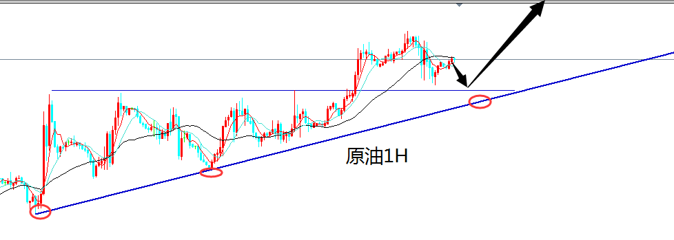 看看上面的原油K图,是不是上升趋势保持的很完整,很多人为什么一直在猜测顶,一直在空它呢,昨天的原油EIA库存出现了大涨,是打压原油价格的,但是原油没有出现大跌,而且是在高位修复,大趋势多头依然还有动力涨,如果要空也是抓一个小回调,而且不是认为顶到了,昨天日线十字星。多头有疲软的信号,今天的原油继续低多看涨吧。