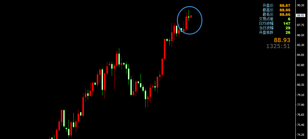 原油反弹初见89.3/4做空,防守90.2,看88下方,做多点位以盘中实时信号为准