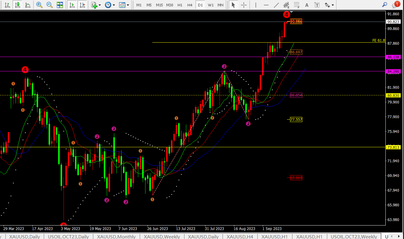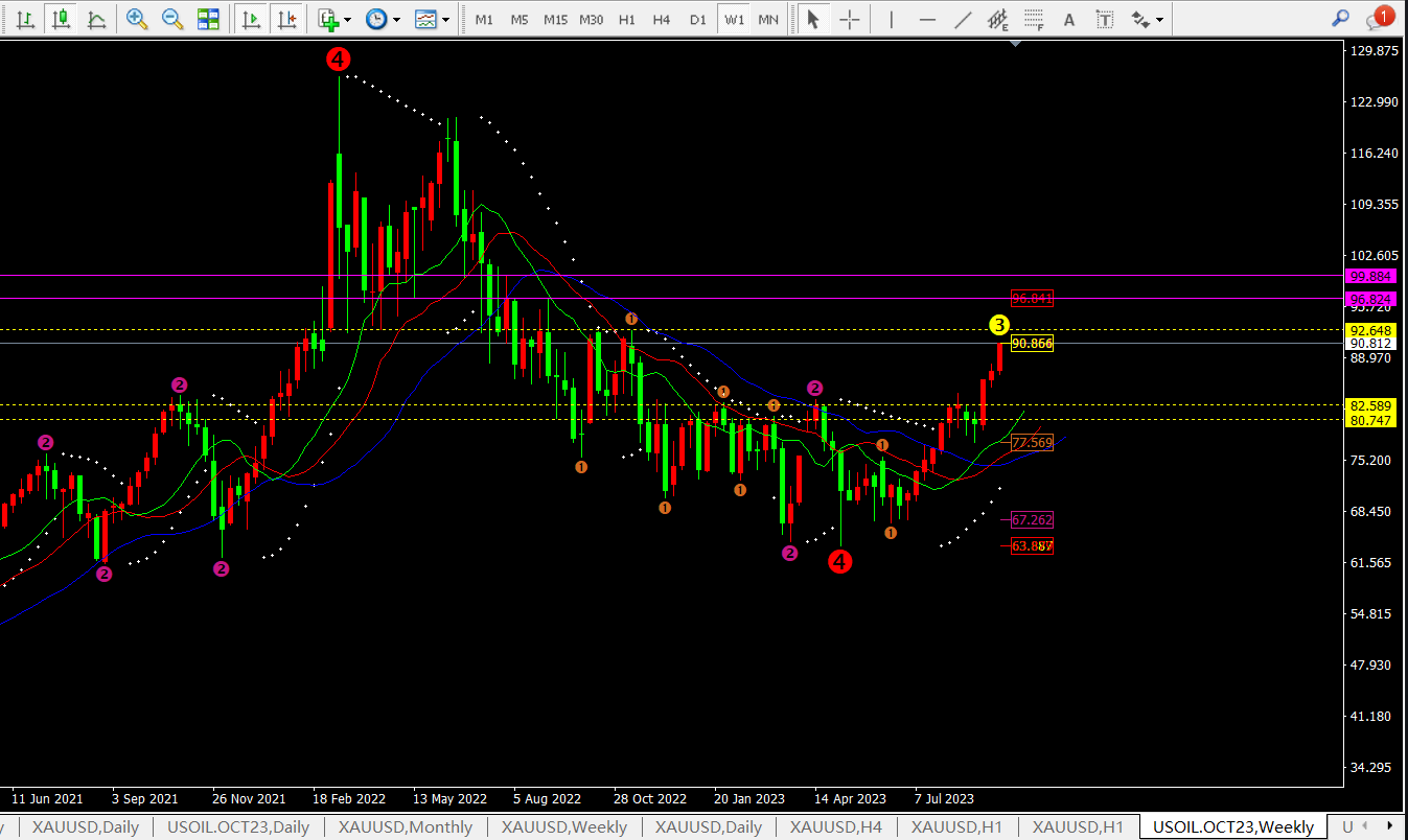 原油当前日线指标macd二次金叉放量运行,灵动指标sto进入超买区域,代表日线还是处于多头上涨阶段;92-93附近应该是会到达的。而当前下方支撑位于均线MA5附近对应89.3一线。其次是防守均线MA10附近88一线。