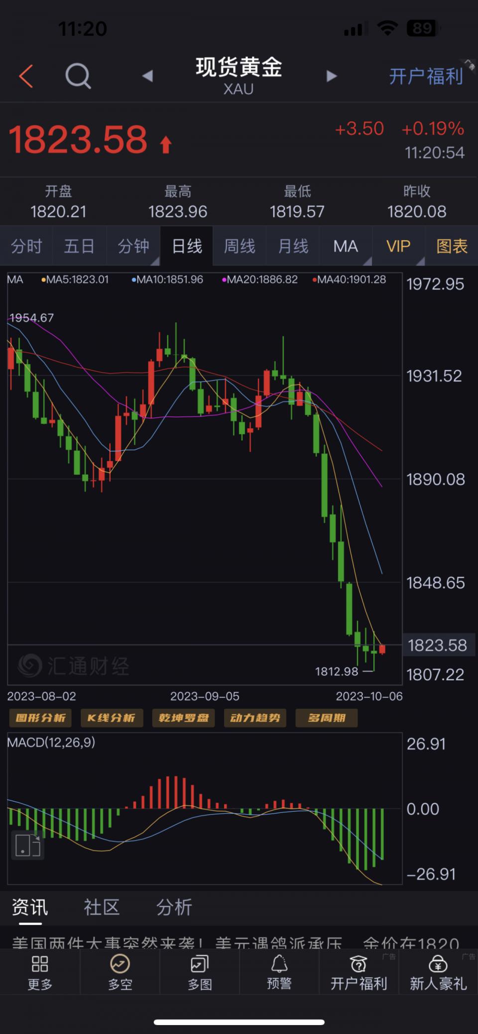 从技术面上来看,目前黄金还没看到见底的信号,强支撑在1800-02附近,原先预期是行情先回落到这个位置,反弹一波,非农后再破,但现在只回调到1812就开始反弹,若今晚非农数据利空或利多大跌,那么这个位置将直接破位,当前日线10日均线下移到1850一线,短线依托此压力继续逢高做空,目前仅仅是一次反抽行情而已,并非你们想象的反转,黄金后市坚定不移看空做空,1800跌破是吃早的事