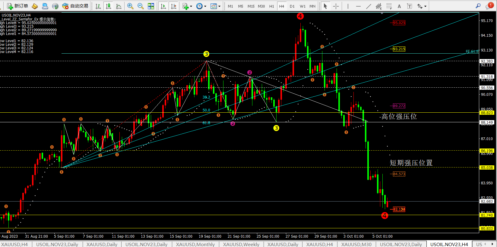 昨日原油价格下跌82附近后多次反弹至84.1-2以及84.6附近,所以短期该位置成为今日的压制点。