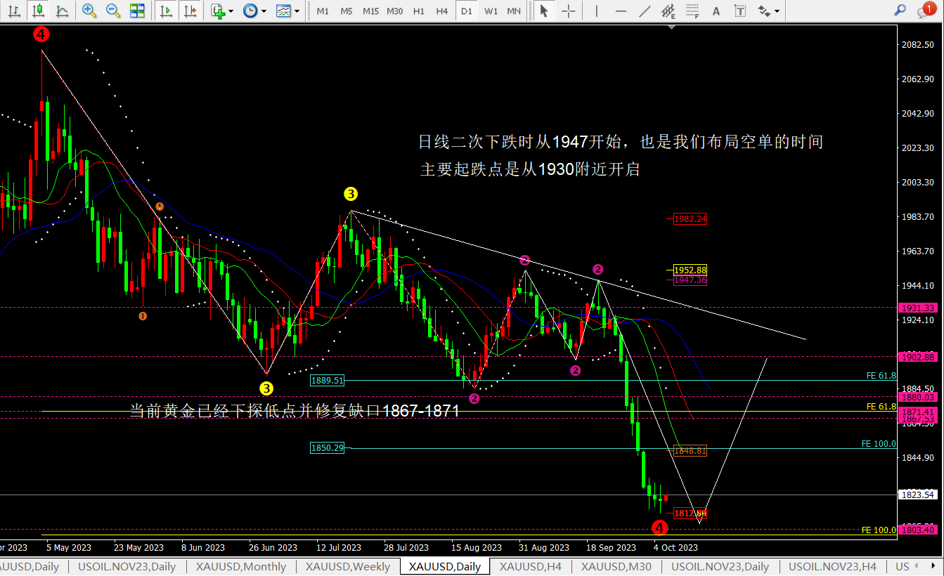 而纵观这几日黄金的表现,美元指数的下跌,黄金并没有上涨而是维持在低位震荡,也说明价格在触底过程。