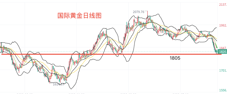 从之后的走势来看,黄金涨至1829美元遇阻回落,美盘开盘后,继续跌至1813美元企稳,刷新半年来新低。黄金企稳后,涨至1821美元遇阻,在回踩1814美元后,再度向上反弹,最高涨至1823美元,目前暂时交投于1821美元附近。黄金低位震荡,在1830美元压力位附近遇阻,在1815支撑位附近企稳,这基本符合我们的预期。