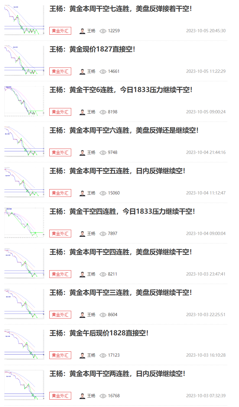 黄金本周干空已经七连胜!趋势的魅力再次展现,你还在不断地抄底被收割吗?跟上王杨的节奏,将顺势而为贯彻到底,看到就赚到,跟上就是不断收割!这不是一句口号,而是实实在在的利润堆积!