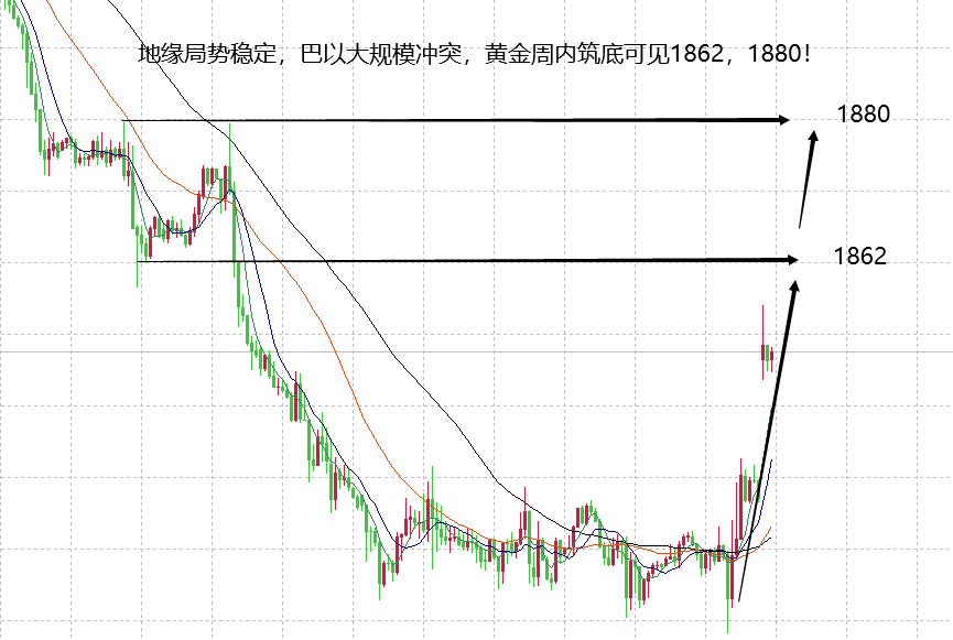 河流之所以能够到达目的地,是因为它懂得怎样避开障碍,交易之所以能够抵达目标,是因为它清楚怎样寻求机会。每个人入场投资的时候都是原创,可悲的是很多人渐渐都成了盗版。如果你还认为自己手有资金,还可以蹉跎岁月的话,你终将一事无成,把每一次的博弈当成最后一次的珍惜,把每一次的入场当成第一次的认真,花盆里长不出苍松,鸟笼里飞不出雄鹰,这不仅投资收获金钱,更多的是人性的修行。上周黄金经过长时间的低位震荡,周五非农数据是拉开震荡区间的重要时间点,也是这波黄金助涨的重要因素,虽然10月非农数据利多美元,利空黄金,但山海坚持自己的思路,确定了非农数据是一次诱导性行情,实际黄金在利空影响下微跌刷新低点后走出强势反弹。周四失业金数据也是如此,每次刷新低点后都有较大的反弹力度,诱空行情明显,就是要骗散户继续追空,所以,即使周五非农数据利空山海也没有做空,反而在确定1816低点后给出多单看涨至1830,完全符合预期,由此黄金基本确定这波空头在1810见底。早盘在地缘局势影响下,黄金走出暴涨空间,这一因素更加确定了黄金在10月将是上涨趋势。
