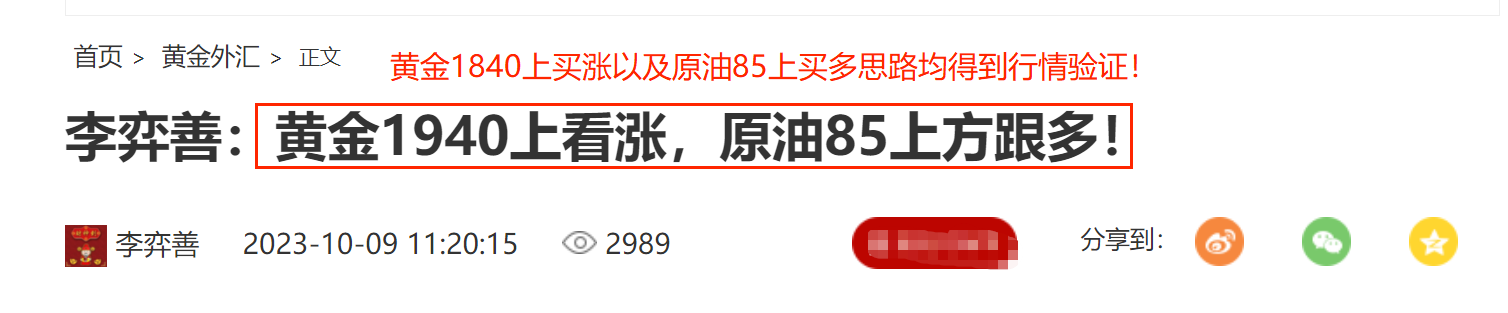 李弈善:黄金1855多,原油85.4继续多!