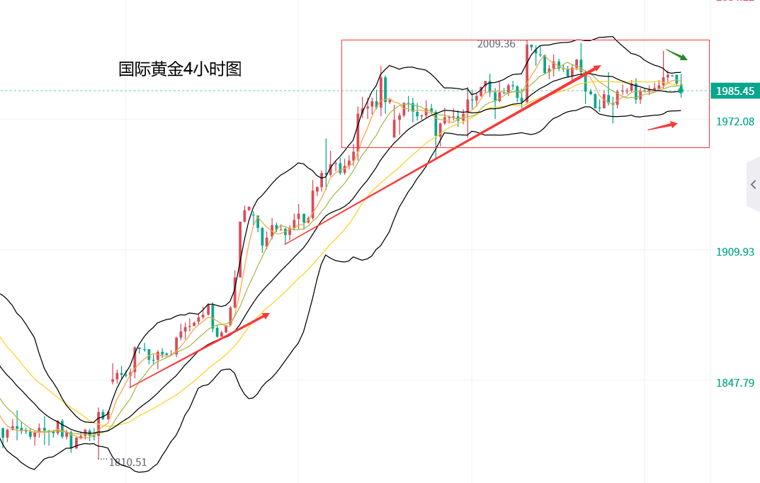 从之后的走势看,黄金在1990美元附近遇阻,回踩1986美元后,金价短线拉升,最高涨至2004美元,随后震荡回落,跌至1986美元,企稳后反弹至2000美元遇阻。本周一开盘,金价小幅下探,企稳1986美元,目前暂时交投于1988美元,继续保持高位震荡。