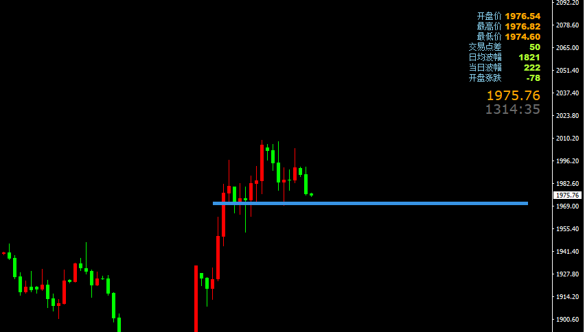 黄金走势上看,上个交易日早盘在1992附近一路震荡回落,欧盘刷新低点触及1981附近企稳反抽,美盘反抽到1988再度承压回落,晚间二次回落破低一路走弱,日线报收一根中等光头阴线,也是符合我们昨天跟大家分享的思路,黄金看好走一波阶段性的回落,我们周五非农先是连续低多兑现之后在1995附近埋伏了波段空单目前兑现了20美金空间,继续下看1960附近,短线操作上反弹继续做空即可,短期关注1970附近支撑情况。