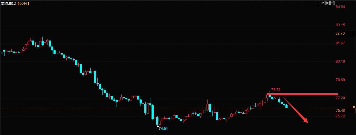 2,原油77.00-77.60区间空,保护78.00 目标76.00、75.50