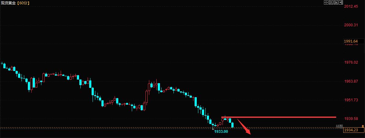 大家上午好,上周黄金从1992跌到1934,跌了近58美完,日线形态周一到周五四连阴,只有周四修正了一波。本周黄金思路还是看空。