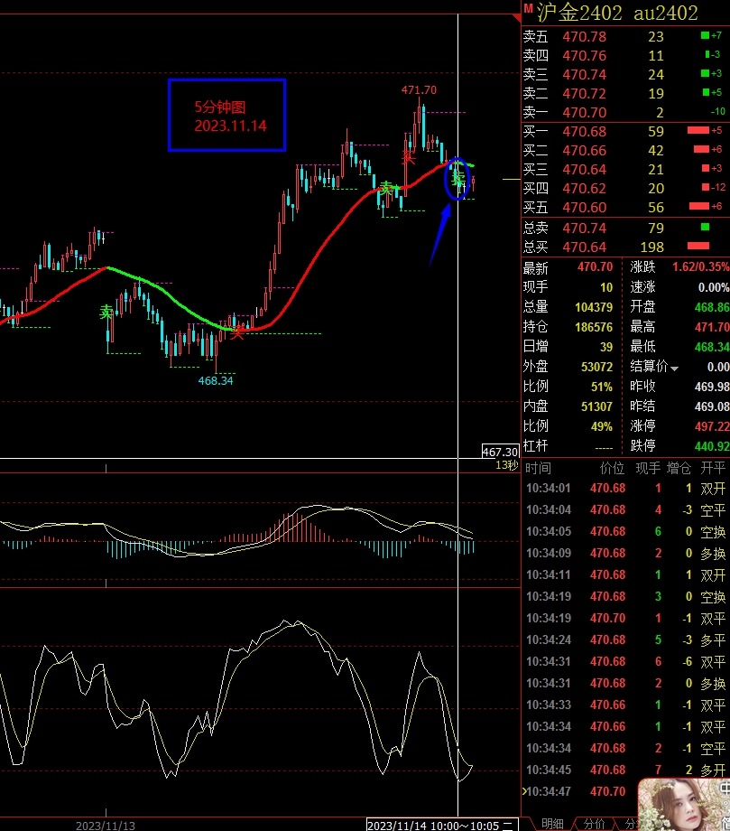 沪金:我们的指标显示超短线给出的买入信号,关注区间在471(昨日我们给出的第一压力位也是昨日高点附近)-467之间,大区间关注在476-464一线.