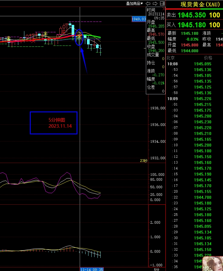 消息面:来看据CME“美联储观察”:美联储12月维持利率在5.25%-5.50%区间不变的概率为85.7%,加息25个基点至5.50%-5.75%区间的概率为14.3%。到明年1月维持利率不变的概率为73.3%,累计加息25个基点概率为24.6%,累计加息50个基点概率为2.1%。今晚需关注CPI的具体公布情况。