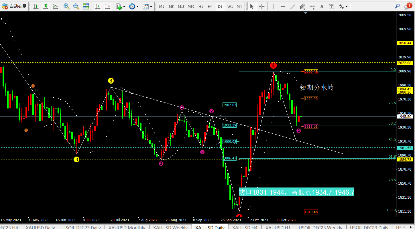 昨日开盘价格从1939-41震荡下跌至1934一线再次反弹至1940-41一线;美盘时段价格下跌至日内低点1931.5一线反弹冲高并破白盘高点至1949一线后维持高位震荡。