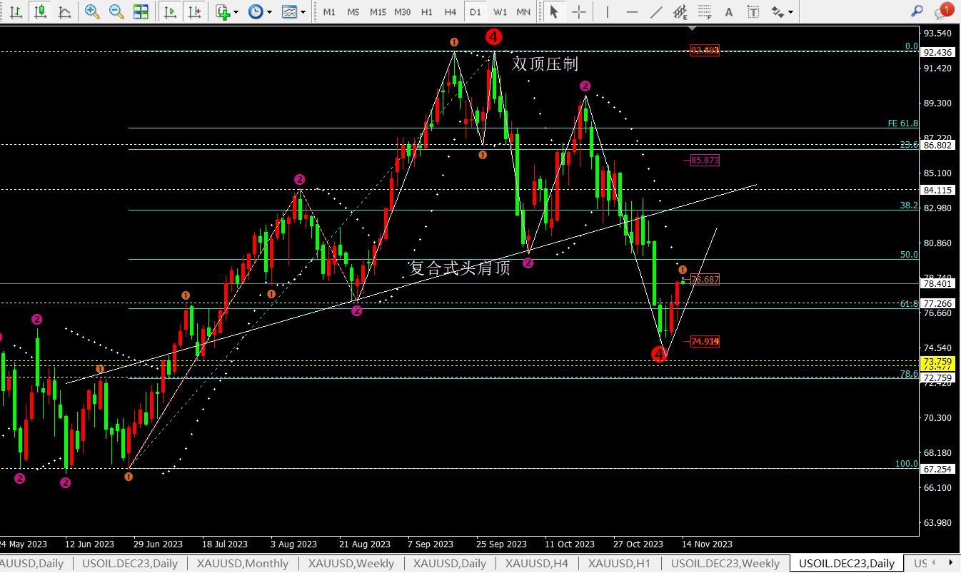 任天成:11.14黄金原油短期双双陷入反弹震荡区间
