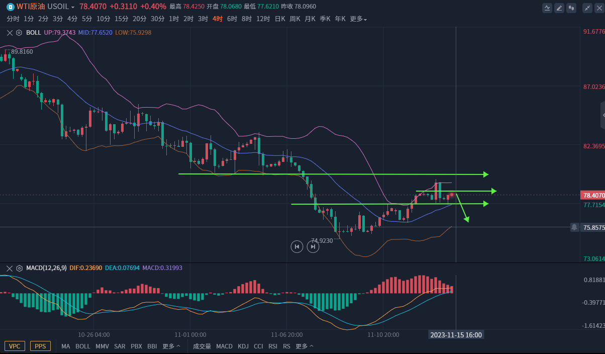 黄金方面、昨晚公布CPI低于市场预期3.3%和前值3.7%,核心通胀也下降至4%为两年来最低水平,虽然说通胀离美联储制定2%计划仍比较遥远,但至少取得一些渐进进展。通胀下降,削弱了美联储年底前加息的预期,并推动了市场对自2020年以来首次降息的预期,昨晚黄金受数据推动应声上涨冲击最高1970.8附近。虽然通胀降低推动黄金上升,但是要明白,黄金十月这一波上升主要受巴以冲突避险上升推动,目前避险情绪消退,可美元利率仍处于高位仍将对黄金形成承压,黄金看空思路不变。